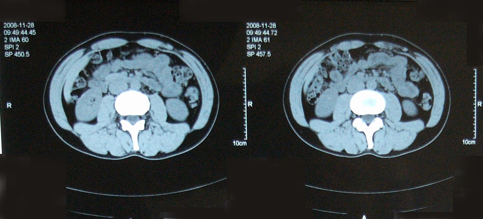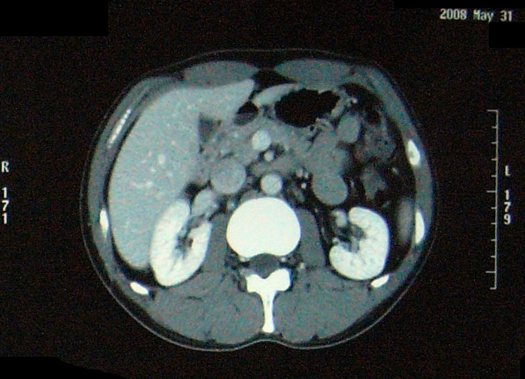 問題なし 【腫瘍マーカー】 HCGβ:<0.1 問題なし 【中性脂肪】 219→137 基準内(38-193)に入った 今回、検査画像をデータでもらってきた。 後腹膜の転移した箇所の前後4枚を2003年から2010年まで並べてみた。 http://gomatsushita.gozaru.jp/ct/album/index.html 2006/7/18の画像を見ると腫瘍がハッキリ見える。 BEP2クール後の9/27の画像では明らかに縮小もしくは消滅。