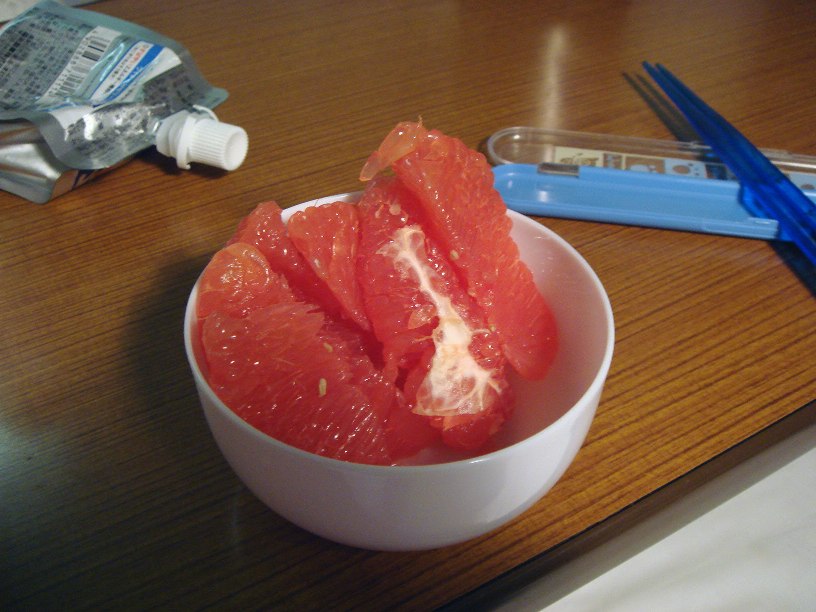 36.9℃/56.8kg 【朝】 ぶどう10個くらい。 昨夜吐きすぎて腰まわりの筋肉が痛い。 午前中に嘔吐。 【昼】 昼は食わず。 14:30 嘔吐 17:30 落ち着いている。アクエリアスがうまい。 先生談:「(落ち着いてきたのは)抗癌剤が尿によって排泄され、吐き気も減ってきたのでは」 だいぶ体力が落ちた。風呂、トイレ、食事。何をしても疲れる。 本日午後より水分が飲みやすくなる。 隣のじいさん笑い転げてる。時間からして「笑点」かな? 【夜】 夕食はオレンジ二切れ。 20時 風呂 退院後したいこと。 淳志墓参り、くら寿司、カテドラル、箱根、バイクでサンタ、嫁においしいカツ丼、秩父。 【その他】 便×1、尿1700ml、タケプロン |
