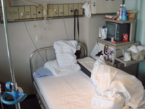 11時半 点滴終了~!いやー長かった。トイレとベッドの往復から開放!!