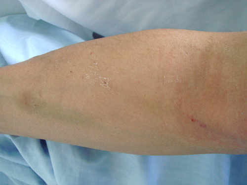点滴針周辺が痛むので針を外す。腫れもあり。右手のむくみがすごい。
